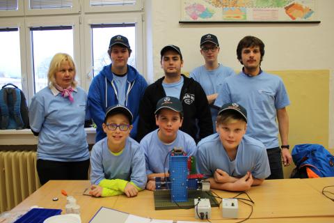 Náš tým tvořili žáci třídy 2.B: Josef Sláma, Adam Šilar a Petr Víšek spolu se žáky 5. třídy ZŠ Pátova Česká Lípa v doprovodu ředitele Mgr. Petra Jonáše a zástupce firmy Sauer Žandov Ing. Zbyňka Růžičky. Tímto také děkujeme jmenované firmě za poskytnutou autobusovou dopravu a sponzorské dary pro celý náš tým. Naše skupina horoucně a věcně přemýšlela a konstruovala. Žáci si vyzkoušeli týmovou spolupráci na přesně dané technické téma. Během dvou a půl hodiny nepřetržitého soustředění složili funkční stroj podle zadání. Přesto, že se nám nepodařili dosáhnout na vítězné příčky, odjížděli jsme domů s dobrými dojmy z naší práce a spokojení s celou organizací soutěže.