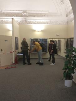 Po 90 minutách přejíždíme k Novoměstské radnici. Zde se rozdělujeme na sedm skupin, které čeká individuální prohlídka Neviditelné výstavy. Žáci mají možnost vždy prozkoumat i viditelnou část výstavy, která jim přibližuje pomůcky, jež nevidomým mají usnadnit běžný život. Kromě orientační bílé hůlky, podle které zrakově postiženého člověka poznáme i na ulici, to jsou např. různé typy brýlí, vysílačka, kalkulačka s Braillovým písmem, různé předměty speciálně upravené, Lormova prstová abeceda, hry … A pak přichází hlavní bod programu exkurze – zkusit si být hodinu nevidomým.