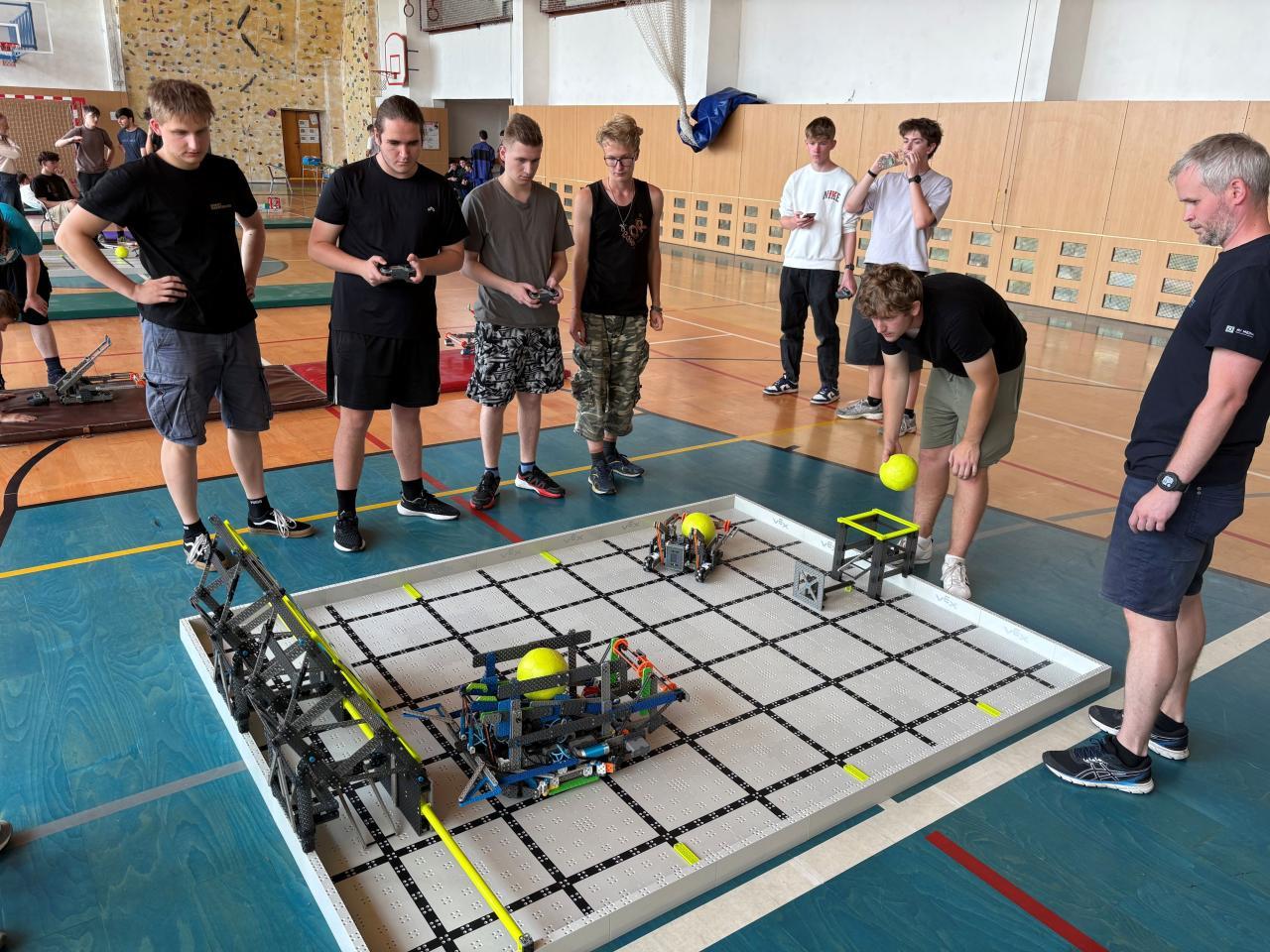 Nejprve jsme se účastnili společně s týmy základních škol vybraných regionálních kol v České Lípě (u nás na Průmyslovce) a Ústí nad Labem (na UJEP FSI), kde jsme sbírali inspiraci, testovali své roboty a vylepšovali strategii.
