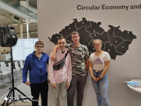 Naše putování začalo u stánku číslo 1, kde se nás ujal Petr Novotný, projektový manažer INCIENu. Vysvětlil nám principy cirkulární ekonomiky a svá slova vždy doložil příklady z praxe. Zavedl nás i k 3D tiskárně, kde jsme viděli výrobky z plastového odpadu, zaujalo nás auto jezdící na bioplyn, chytrý tučňák, vyzkoušeli jsme nábytek z recyklovaného plastu. Společné kroky nás zavedli do pavilonu Z, kde jsme se mj. zastavili u stánků technických vysokých škol či Ministerstva průmyslu a obchodu, kde nás paní M. Tomíková provedla strategickými cíli Politiky druhotných surovin ČR a slíbila poslat zajímavá videa. Někteří z nás vyzkoušeli roboty KUKA a obohatili se o adrenalinové zážitky (zapojili se tak i do soutěže).