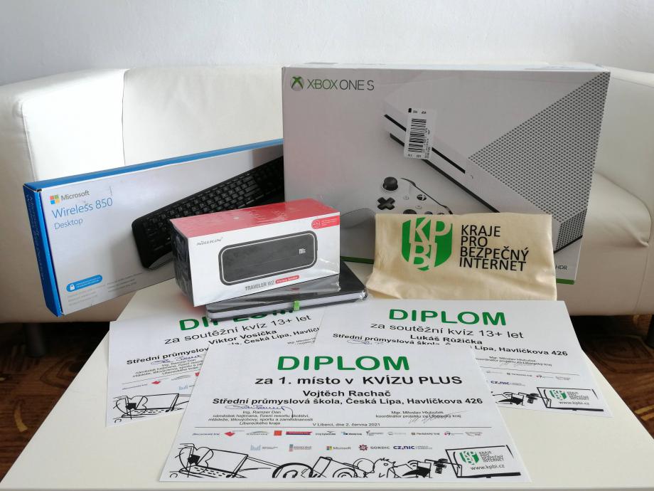 Vojta získal krásné první 1. místo v kvízu PLUS a odměněn byl parádní cenou, X-boxem One S a taškou s dalšími upomínkovými cenami (tužky, propisky, USB). Gratulujeme a přejeme úspěch v celostátním kole, do kterého Vojta postoupil.