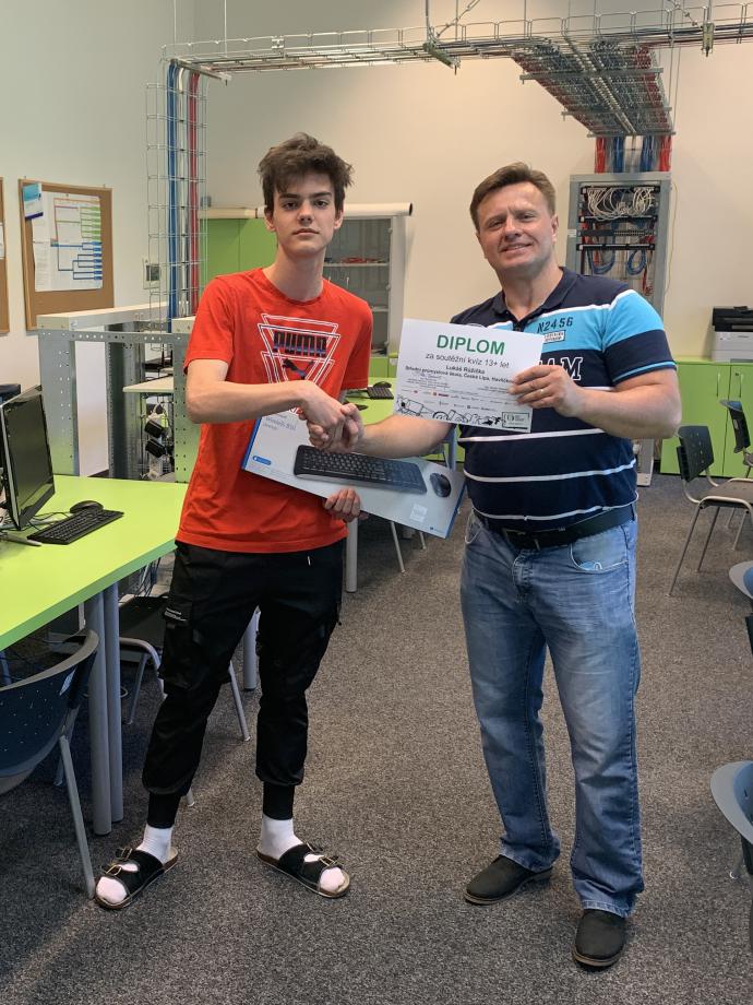 Viktor za 2. místo ve věkové kategorii 13+ získal reproduktor Nillkin Traveler a tašku s výherními předměty. Lukáš za 3. místo ve stejné kategorii obdržel klávesnici Microsoft a s tašku s výherními předměty.